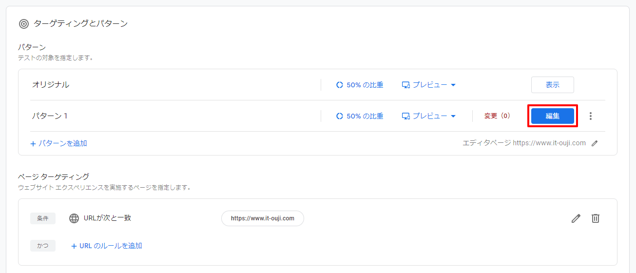 初期設定が完了しましたので、A/Bテストするパターンを作成していきます。